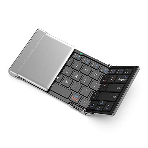 折り畳みモバイルキーボード「IC-BK03」 iCleverさんのキーボードはいくつか持ってますが、2つ折りだと折り目のところのキーが異サイズなのとSPACEが分割されるのがなれなくて、3つ折りを購入。 開いたときのかっちりと治まる感じと、全てのサイズが同じサイ…